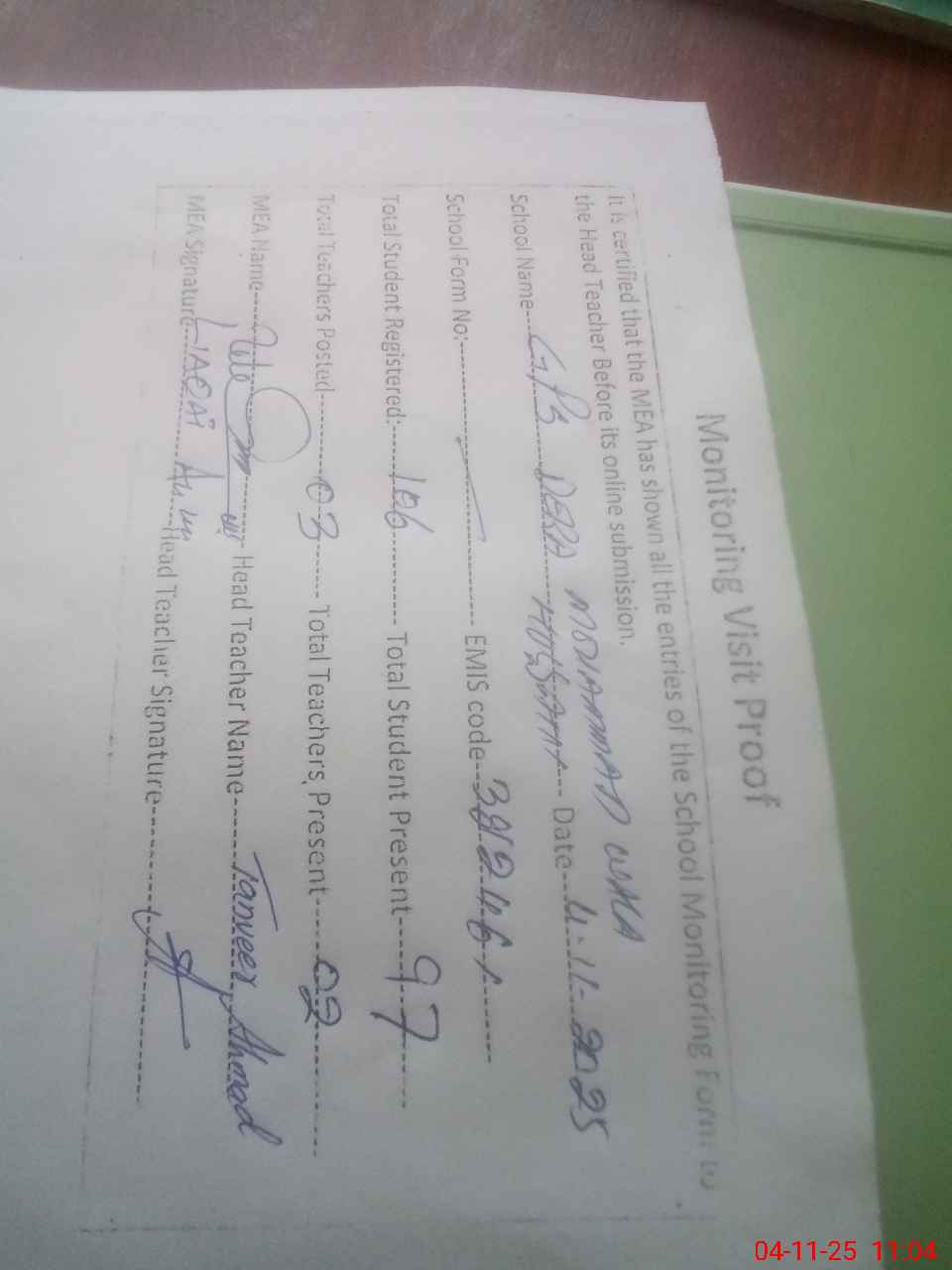 | EMIS Code: 38120461 | Name of School: GPS DERA MUHAMMAD HUSSAIN WALA | |||