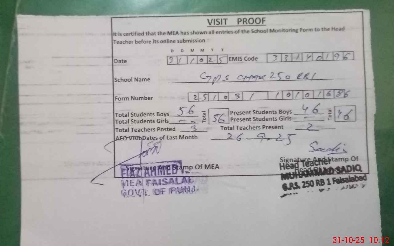 | EMIS Code: 33140196 | Name of School: GPS CHAK 250 RBI | |||