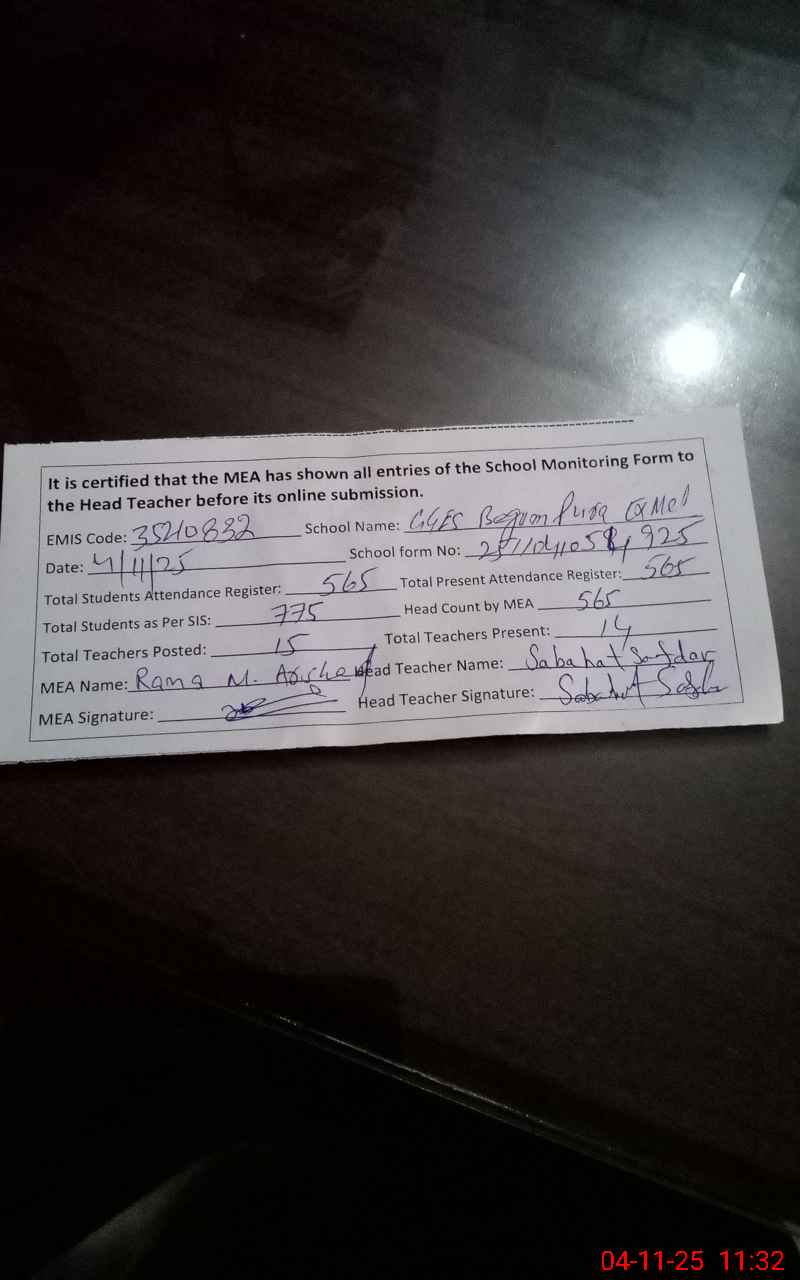 | EMIS Code: 35210832 | Name of School: GGES BEGUM PURA (EX-MCL) | |||