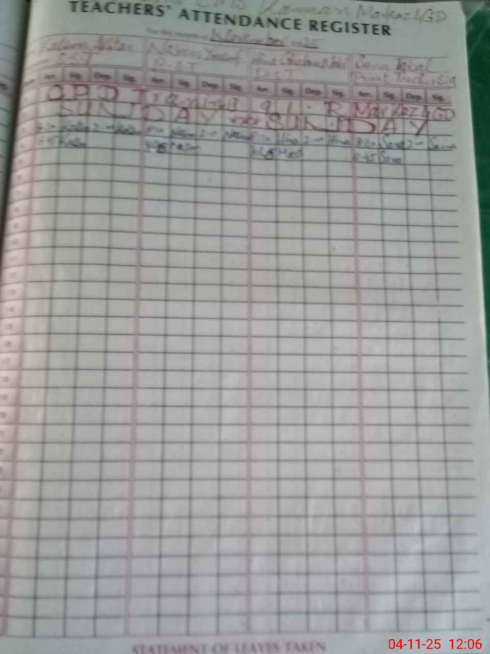 | Leave | Duty | Absent | Maternity | Medical | Ex- Pak |