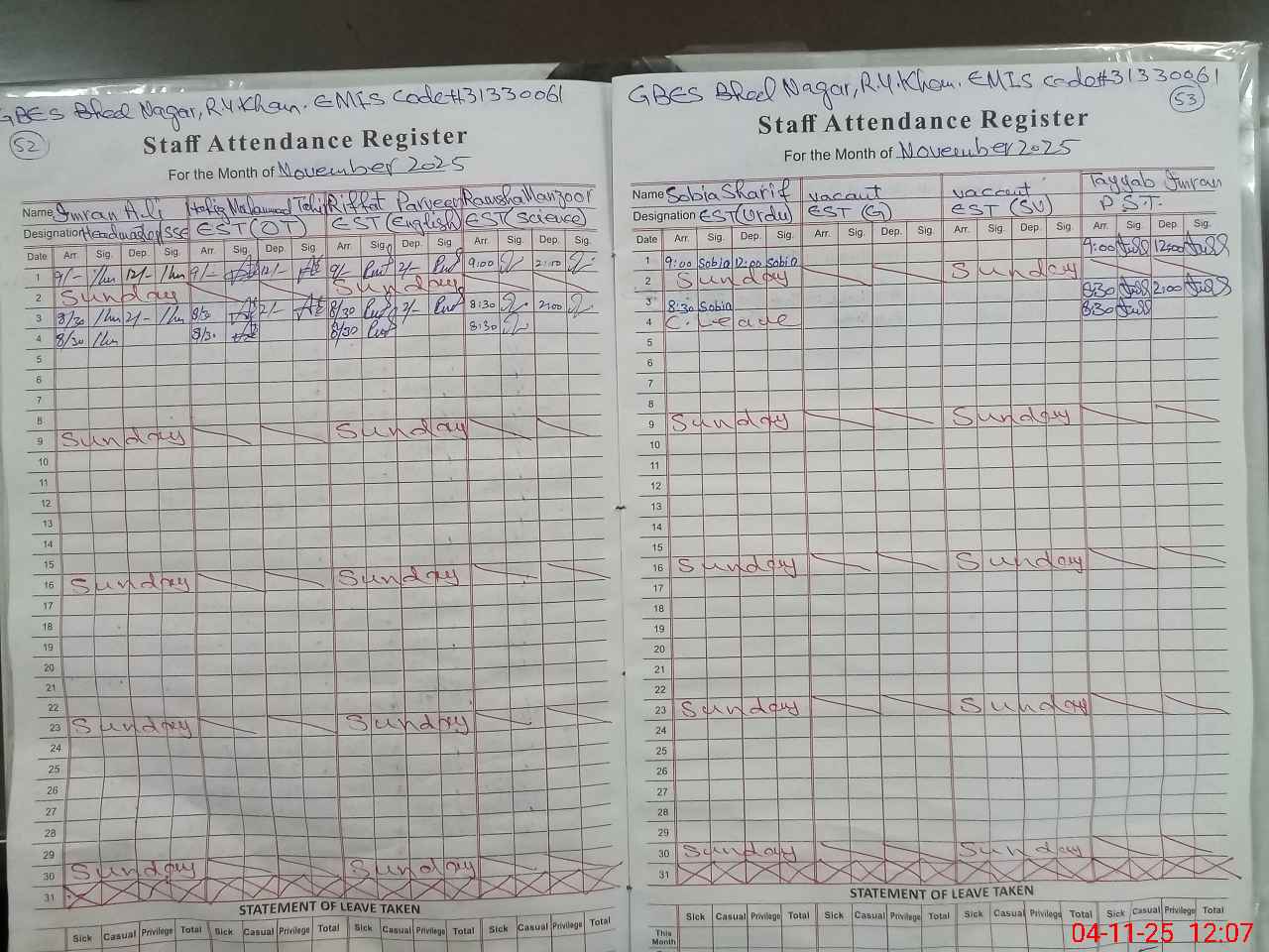 | EMIS Code: 31330061 | Name of School: GES BHEEL NAGAR RAHIM YAR KHAN | |||