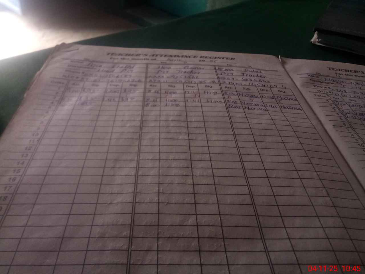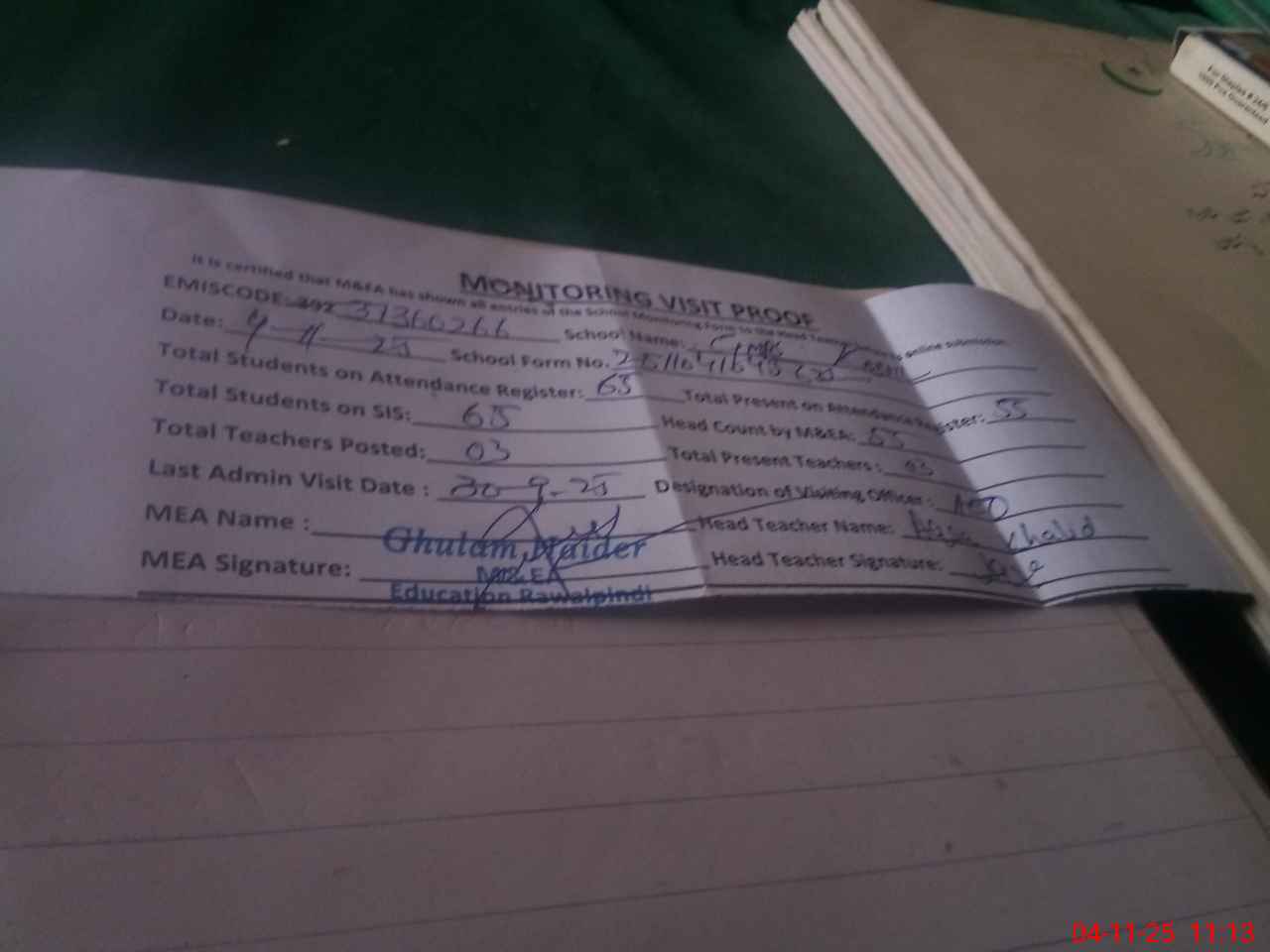 | Attendance Register | Head Teacher | MEA with School | Visit Proof |