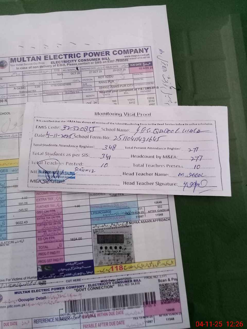 | Attendance Register | Head Teacher | MEA with School | Visit Proof |
