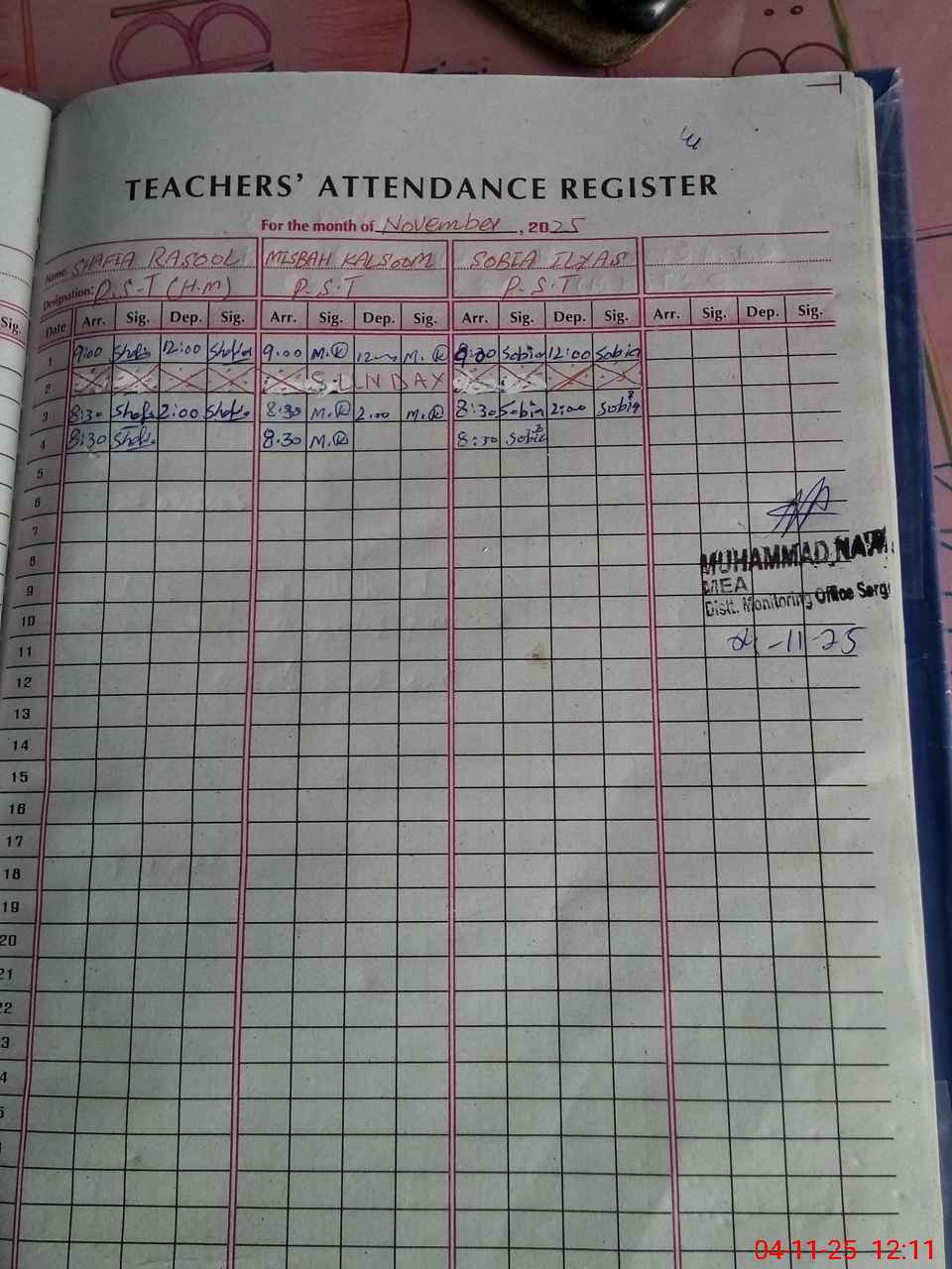 | Name: Sh**** Ra**** Designation: (School Headmaster's/Headmistress's) PST Phone/Cell Number: 03**** |