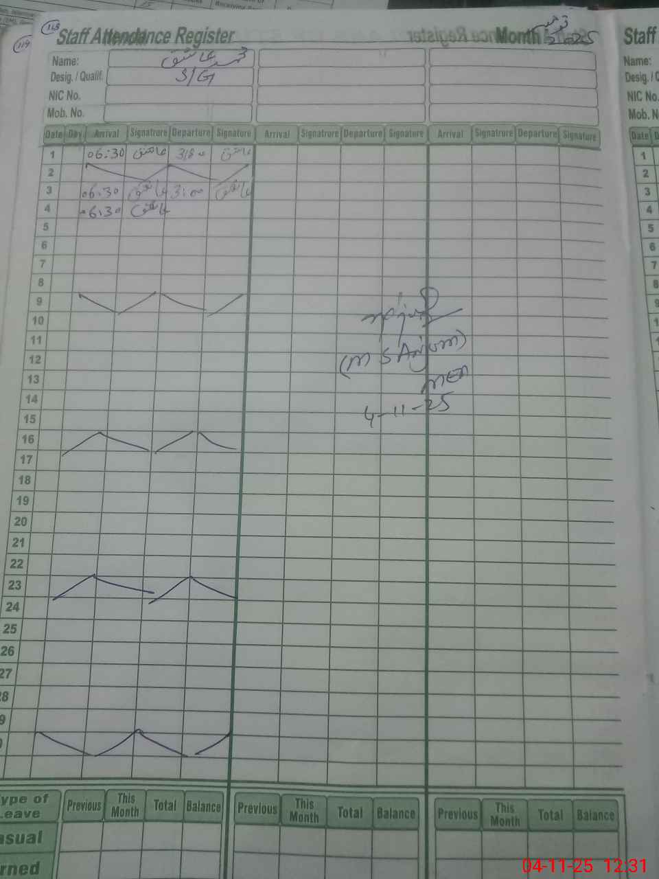 | 34**** | MU**** AS**** | NAIB QASID | Regular | 0 | 0 | 0 | 0 | 0 | 0 | 0 | 0 | 0 | Casual |