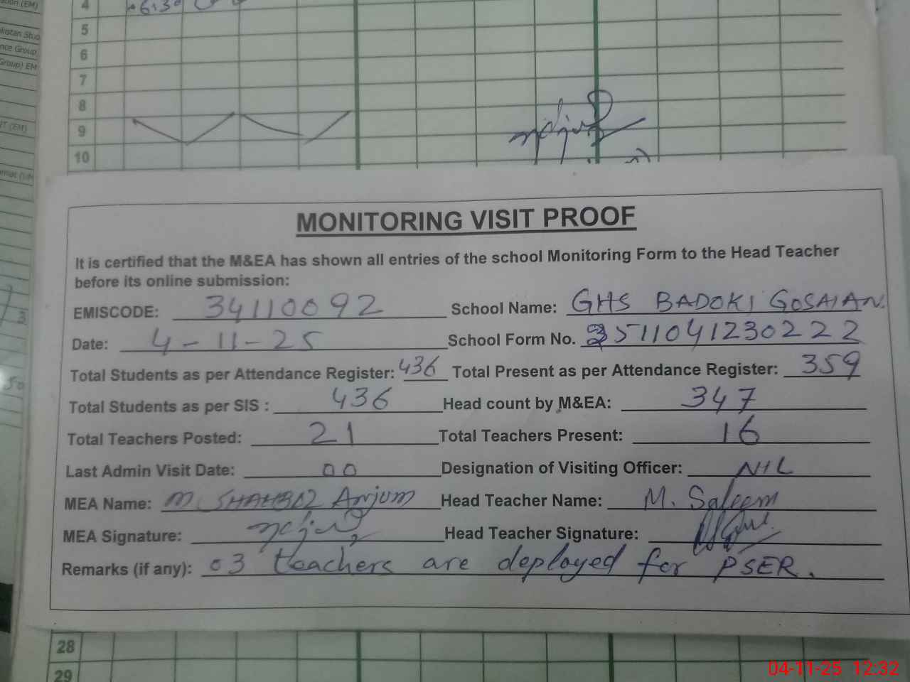 | EMIS Code: 34110092 | Name of School: GHS BADHOKE GOSAIYAN | |||