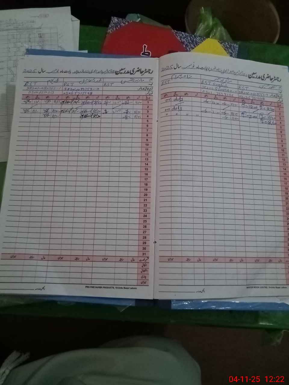 | CNIC | Full Name | Designation | R/C | Absence During Last Calender Month |