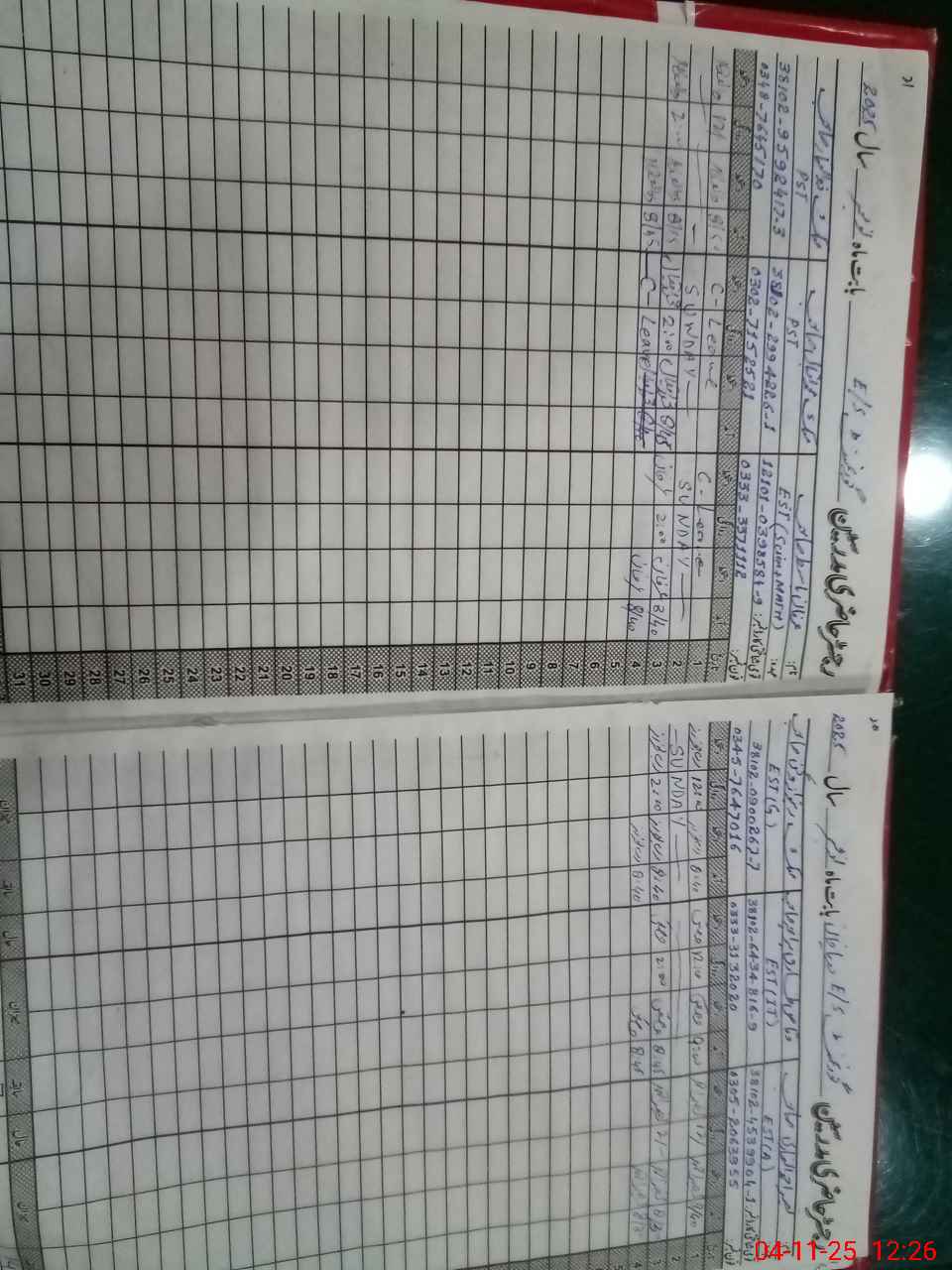 | CNIC | Full Name | Designation | R/C | Absence During Last Calender Month |