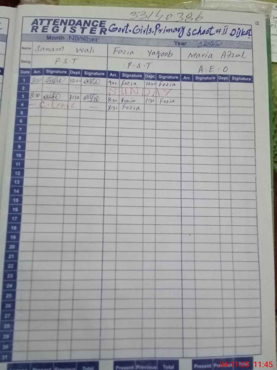 | Name: SA**** WA**** Designation: (School Headmaster's/Headmistress's) PST Phone/Cell Number: 03**** |
