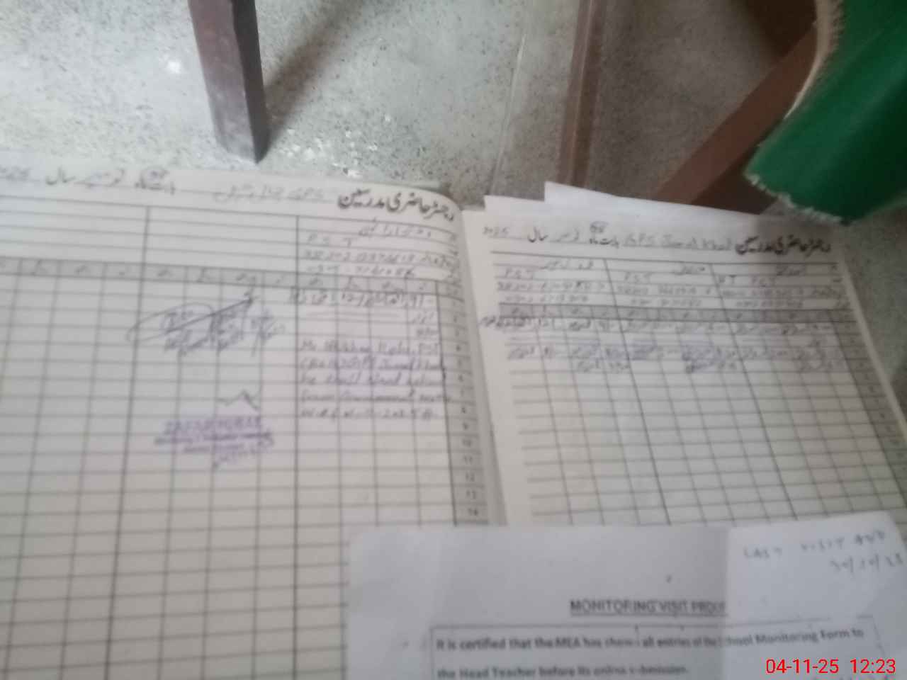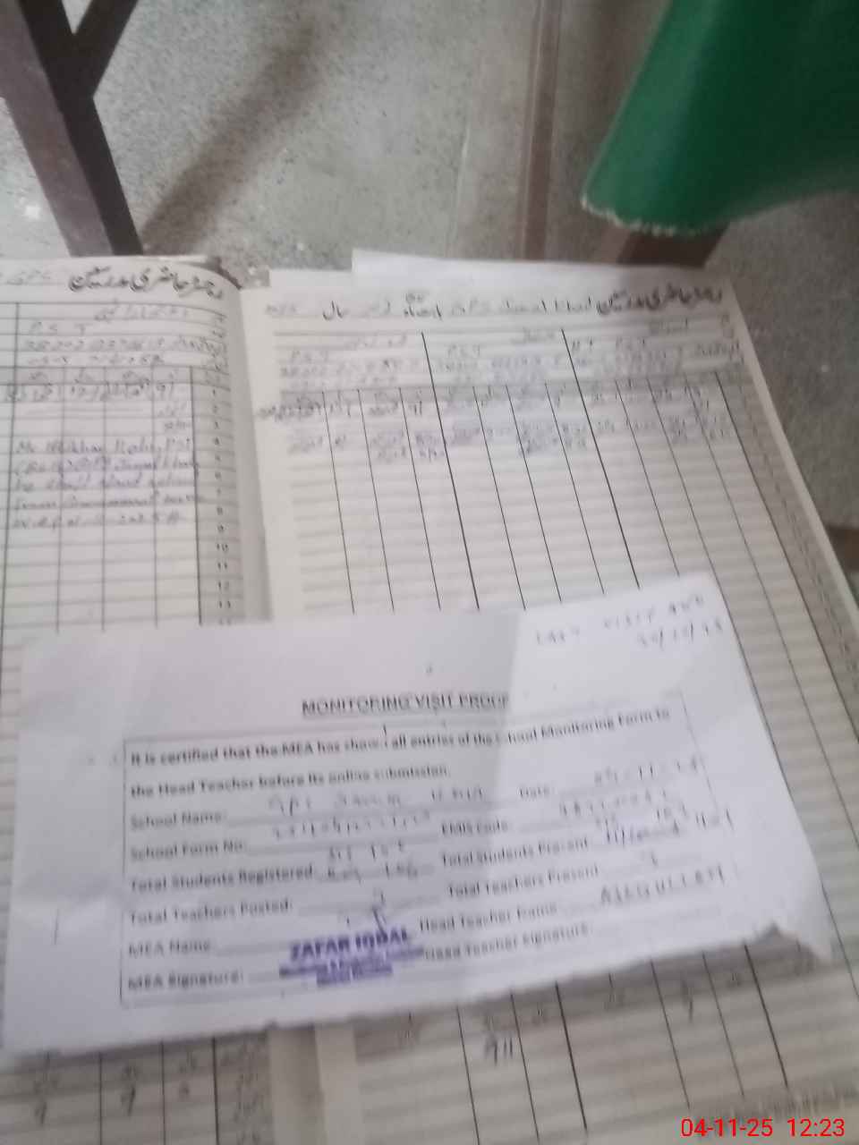 | Attendance Register | Head Teacher | MEA with School | Visit Proof |