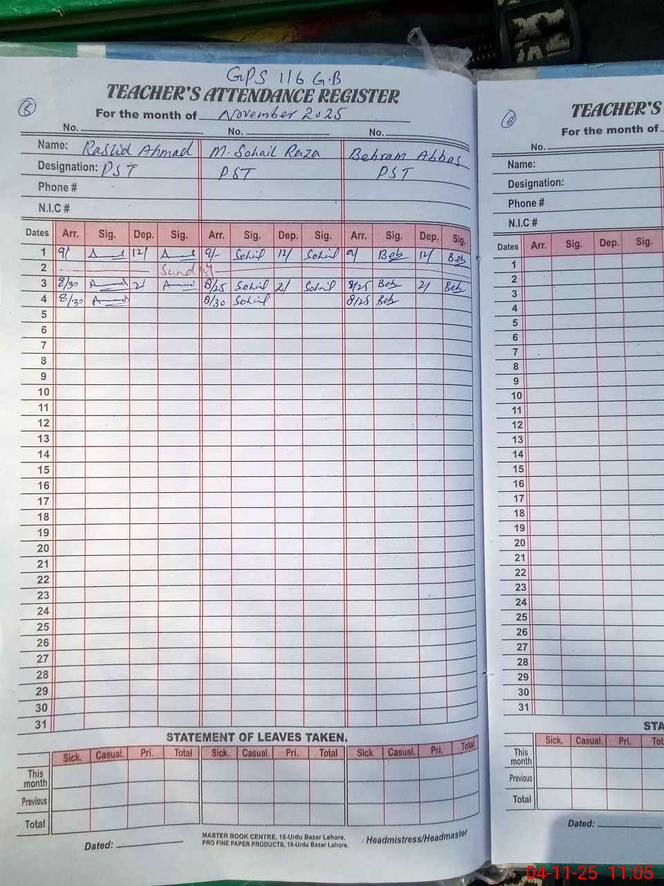 | Name: RA**** AH**** Designation: (School Headmaster's/Headmistress's) PST Phone/Cell Number: 03**** |