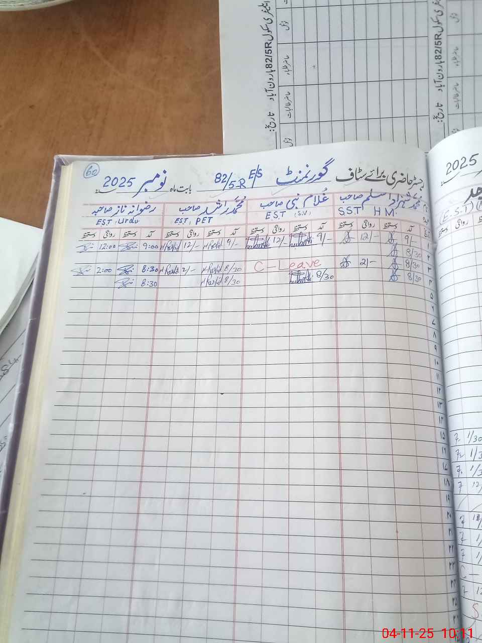 | CNIC | Full Name | Designation | R/C | Absence During Last Calender Month |