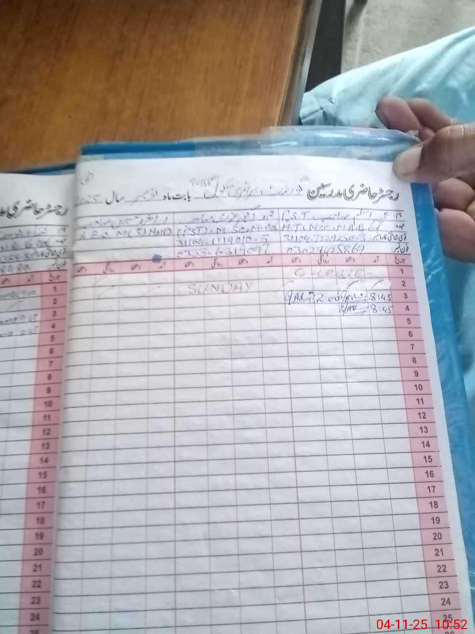 | CNIC | Full Name | Designation | R/C | Absence During Last Calender Month |