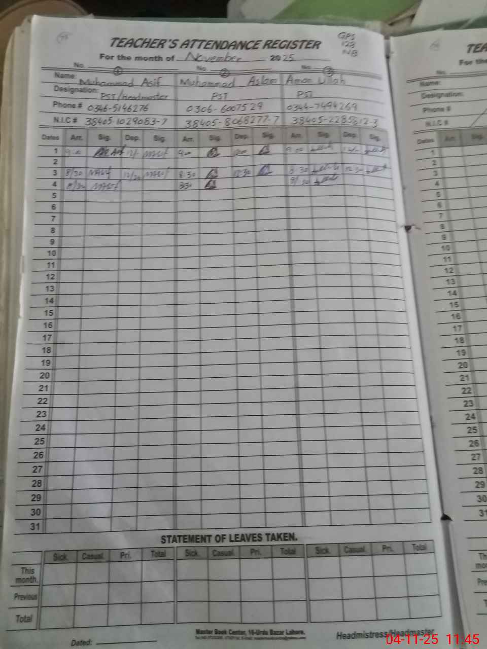 | Name: Mu**** As**** Designation: (School Headmaster's/Headmistress's) PST Phone/Cell Number: 03**** |