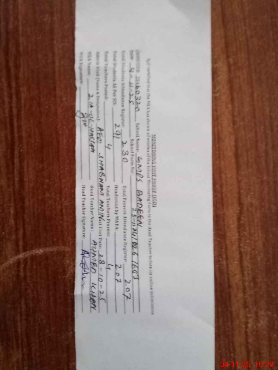 | EMIS Code: 38460320 | Name of School: GMPS BADEEN | |||