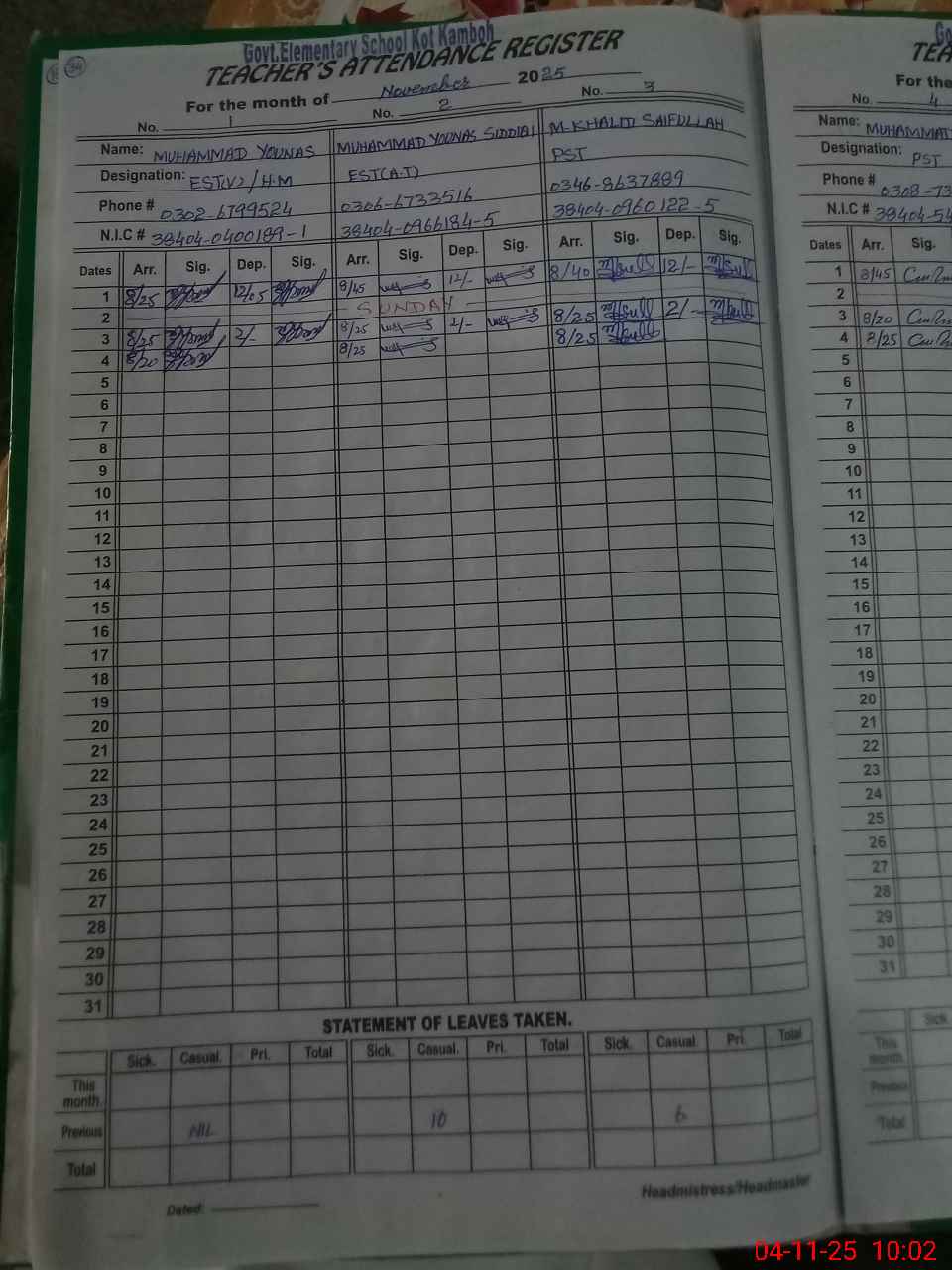 | Name: Kh**** Ha**** Designation: (School Headmaster's/Headmistress's) EST I/C HEADMASTER Phone/Cell Number: 03**** |