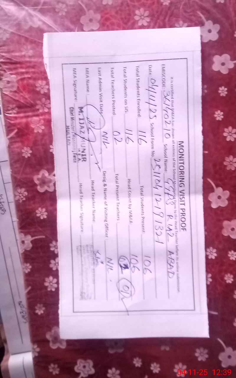 | EMIS Code: 36140210 | Name of School: GGPS RIAZ ABAD BASTI ILYAS WALA | |||