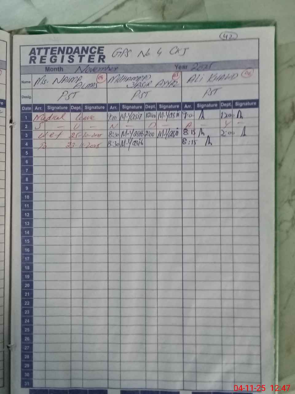 | 33**** | Na**** Al**** | Regular | 11 | 0 | 0 | 0 | 7 | 0 | 0 | 0 | 4 | Medical | |