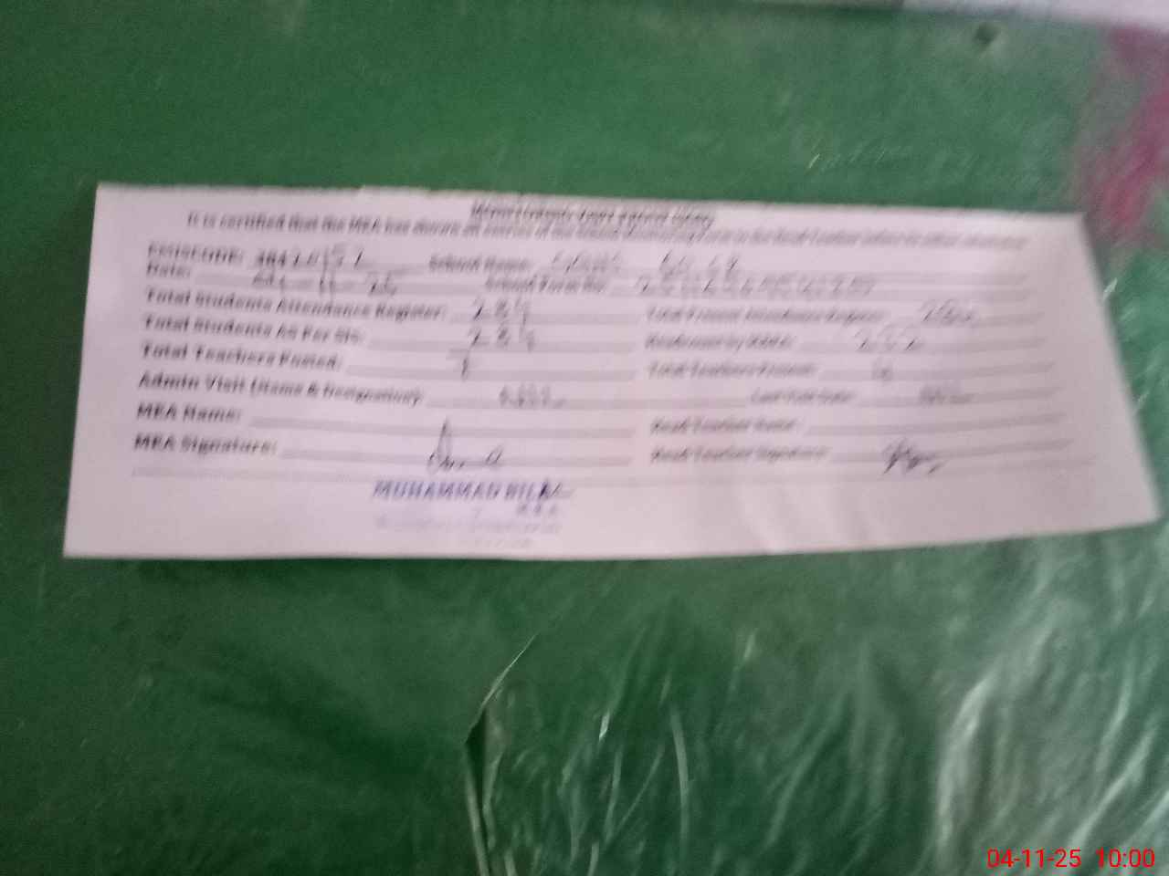 | Attendance Register | Head Teacher | MEA with School | Visit Proof |