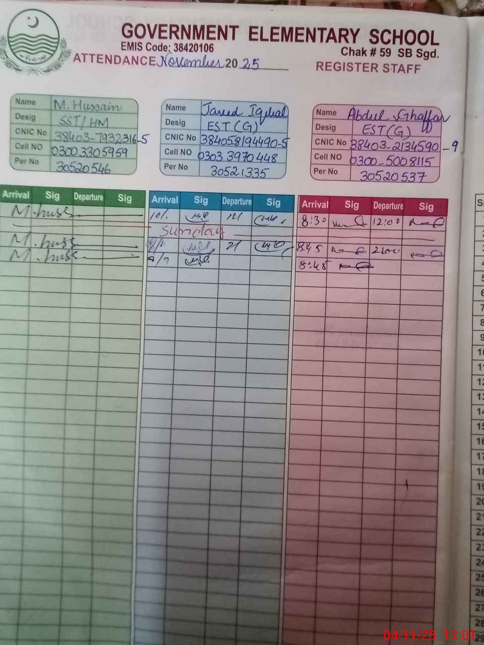 | EMIS Code: 38420106 | Name of School: GES CHAK NO.59 SB | |||