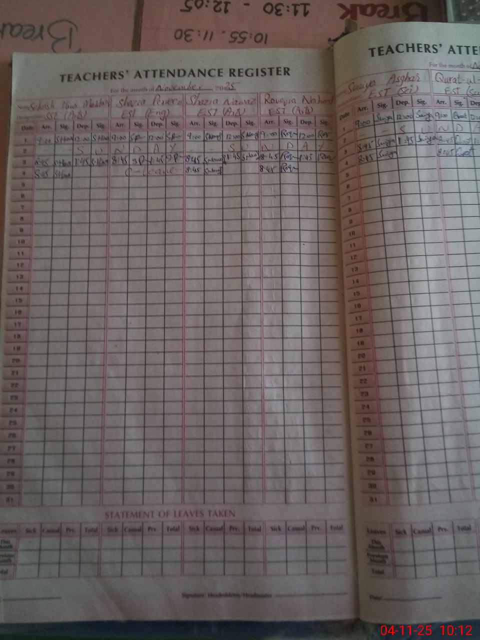 | Leave | Duty | Absent | Maternity | Medical | Ex- Pak |