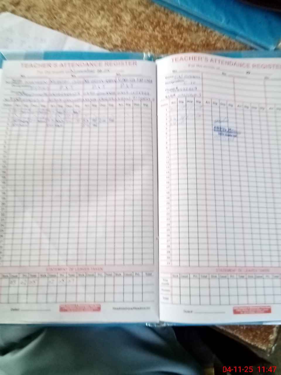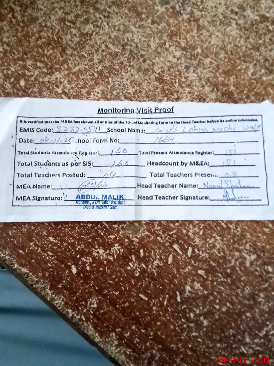 | Attendance Register | Head Teacher | MEA with School | Visit Proof |