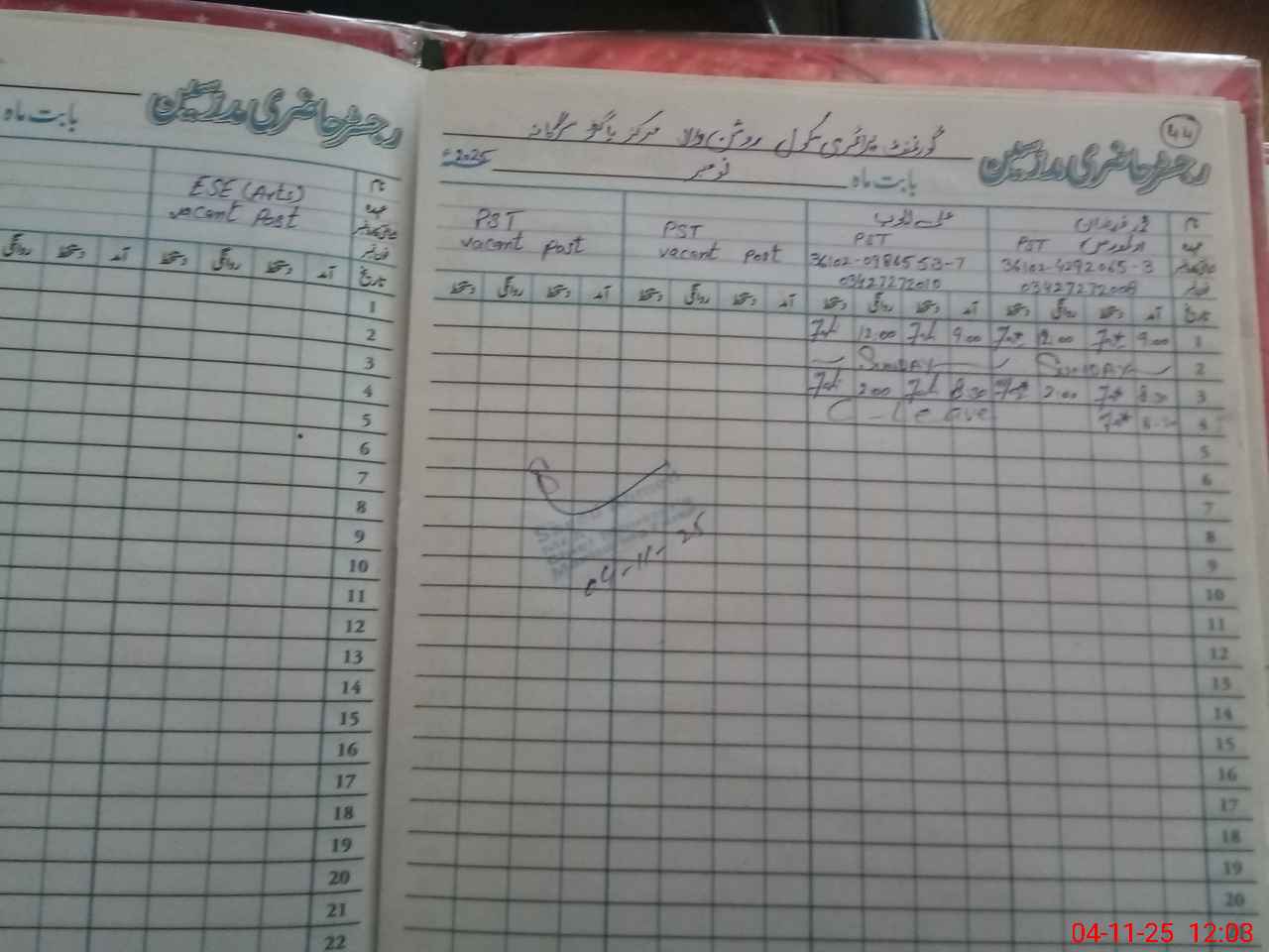 | Name: M.FA**** Designation: (School Headmaster's/Headmistress's) PST Phone/Cell Number: 03**** |