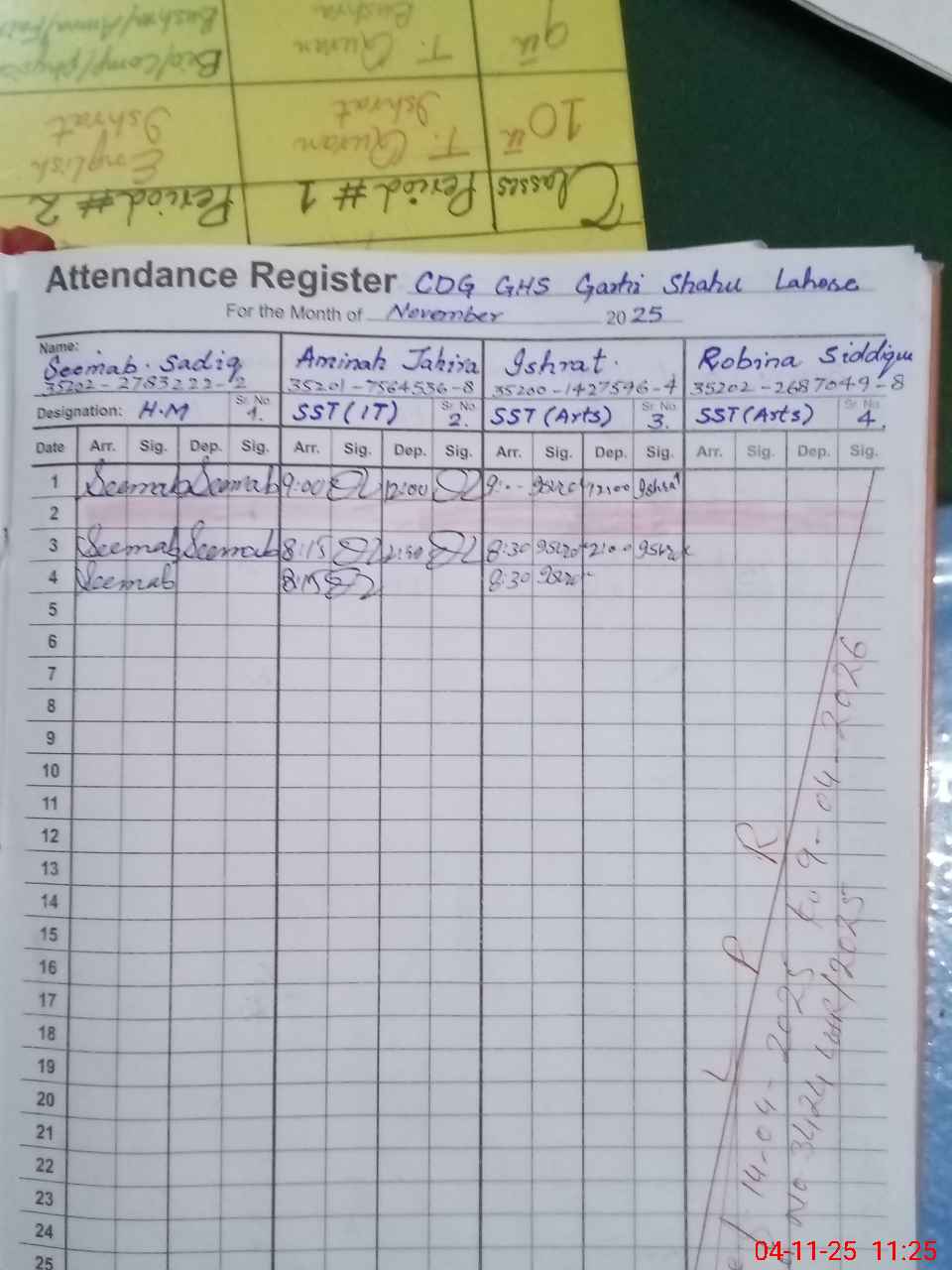 | CNIC | Full Name | Designation | R/C | Absence During Last Calender Month |