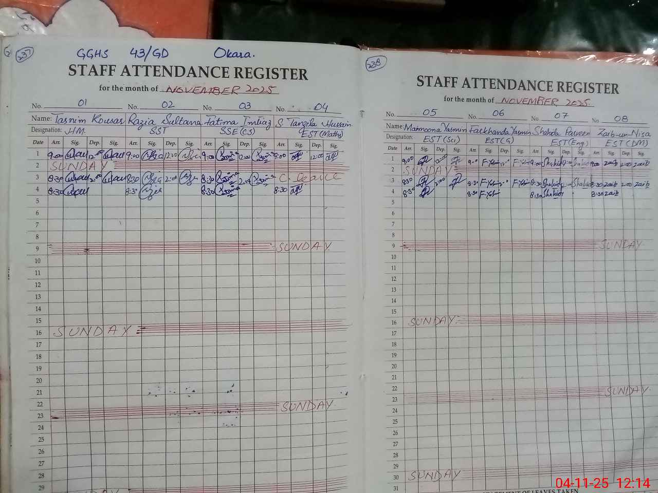 | EMIS Code: 39320118 | Name of School: GGHS CHAK NO. 43/G.D | |||
