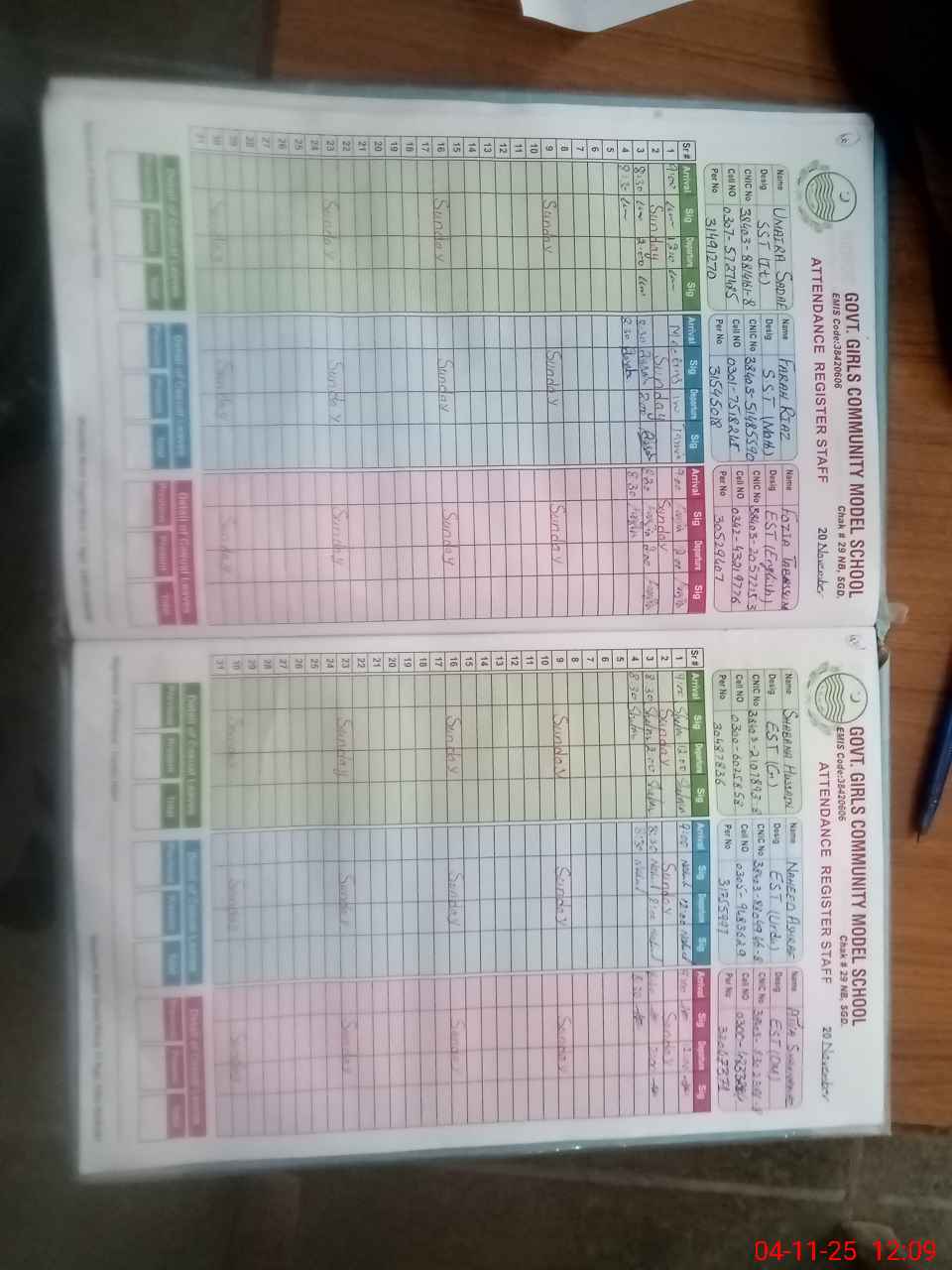 | CNIC | Full Name | Designation | R/C | Absence During Last Calender Month |