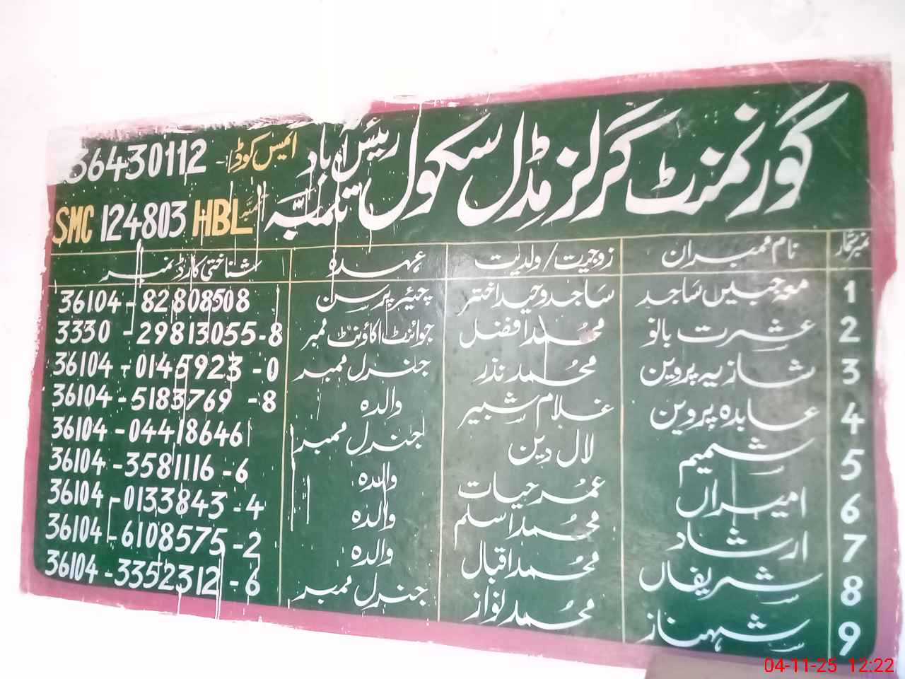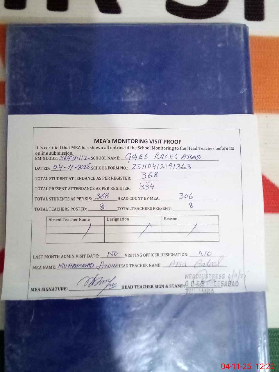 | EMIS Code: 36430112 | Name of School: GGES RAEES ABAD, TULAMBA | |||