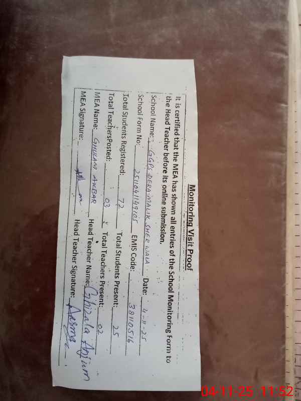 | EMIS Code: 38110516 | Name of School: GGPS MALIK SHER WALA | |||