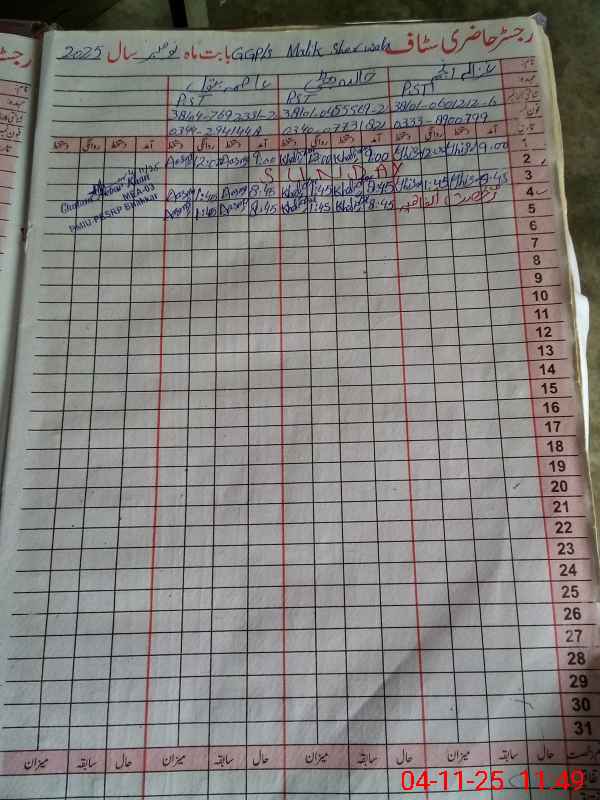 | Name: Gh**** An**** Designation: (School Headmaster's/Headmistress's) PTC/JV Phone/Cell Number: 03**** |