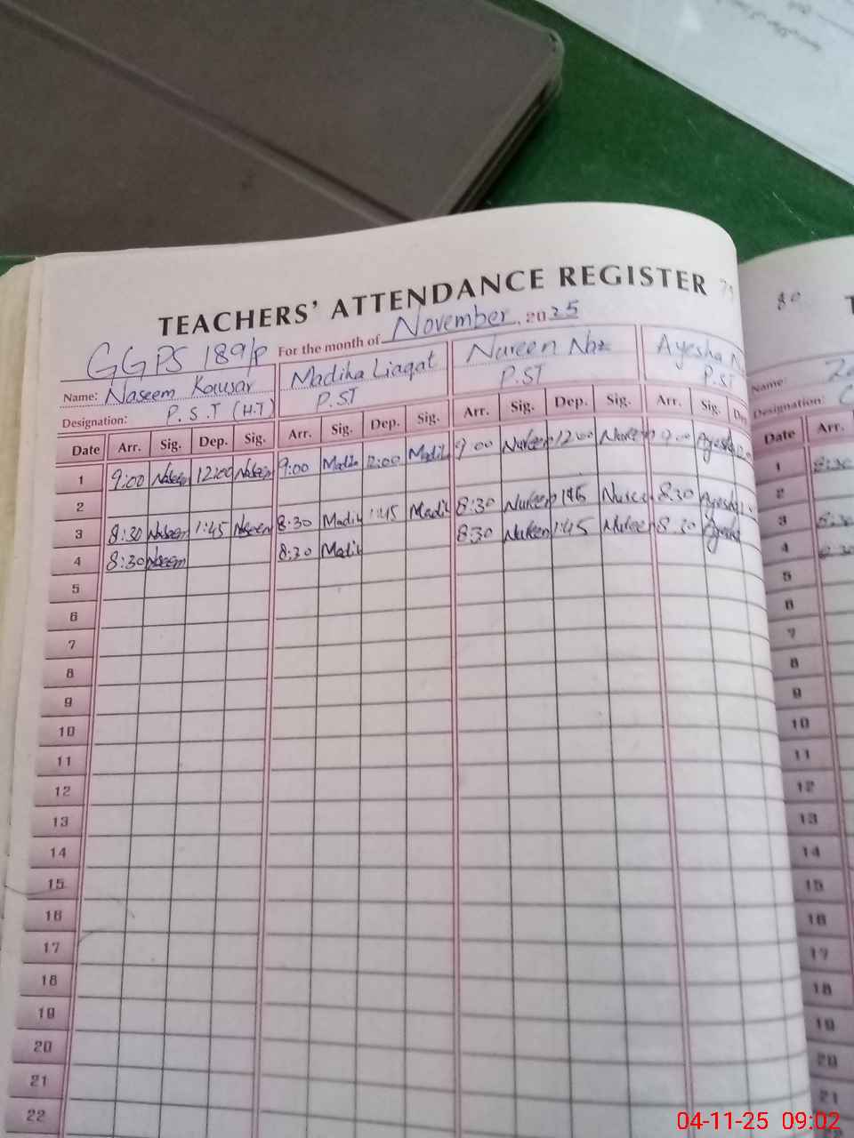 | CNIC | Full Name | Designation | R/C | Absence During Last Calender Month |
