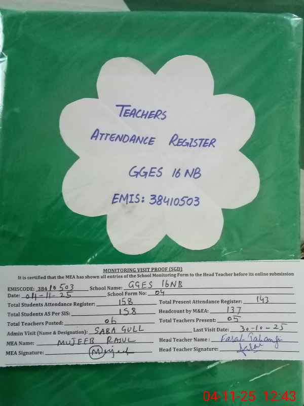 | EMIS Code: 38410503 | Name of School: GGES CHAK NO.16 NB | |||