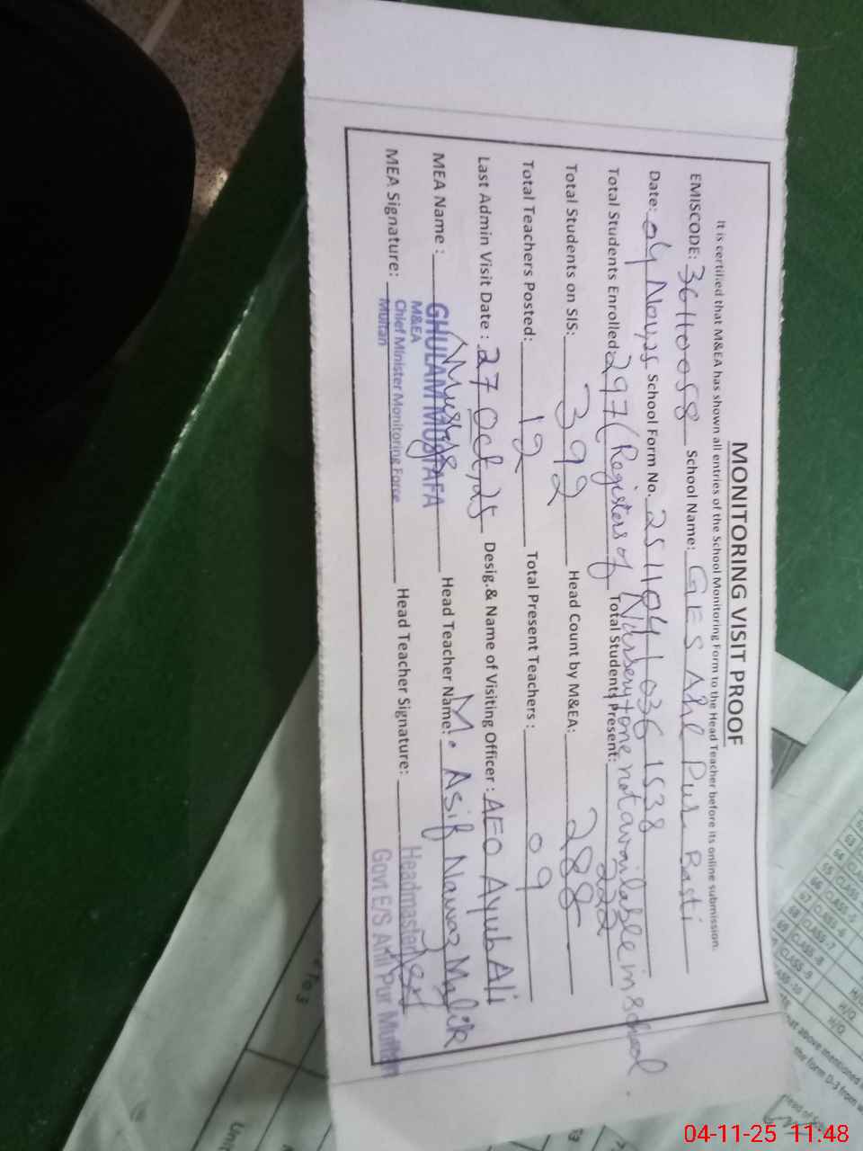 | EMIS Code: 36110058 | Name of School: GES AHIL PUR BASTI GHULAM YASEEN | |||