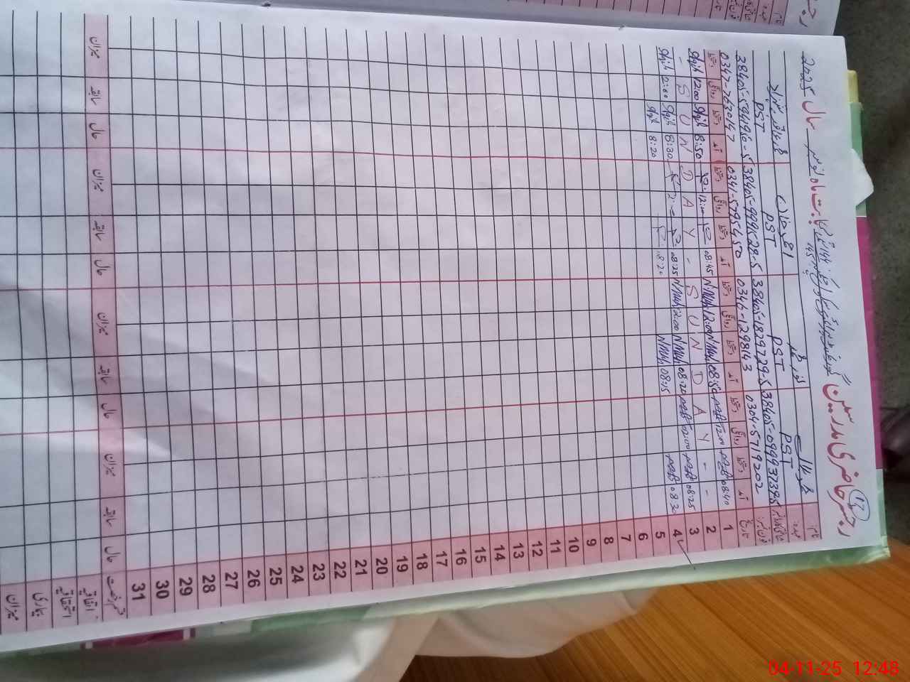 | CNIC | Full Name | Designation | R/C | Absence During Last Calender Month |