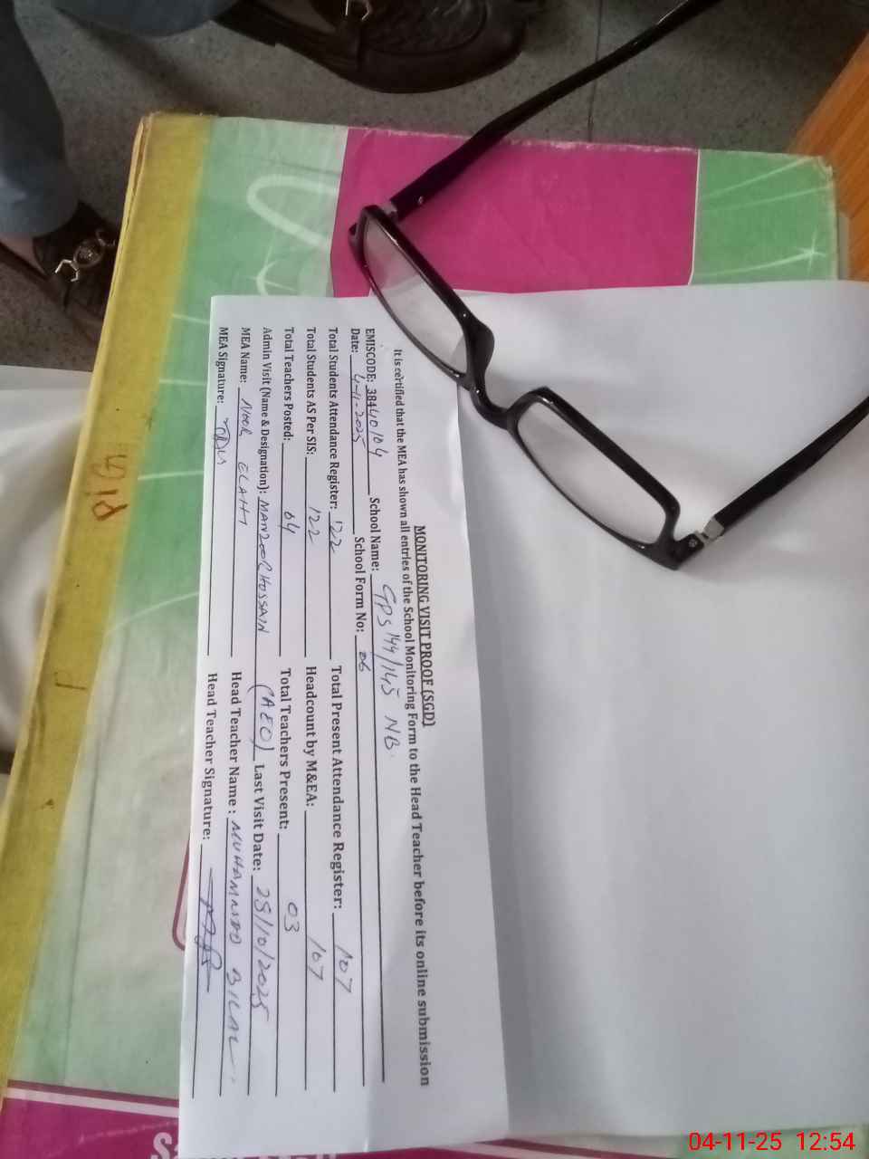 | Attendance Register | Head Teacher | MEA with School | Visit Proof |