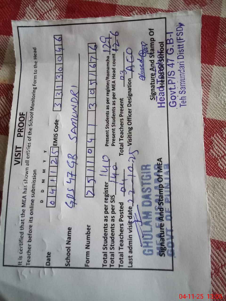 | EMIS Code: 33130046 | Name of School: GPS CHAK 47 GB SAMUNDRI | |||