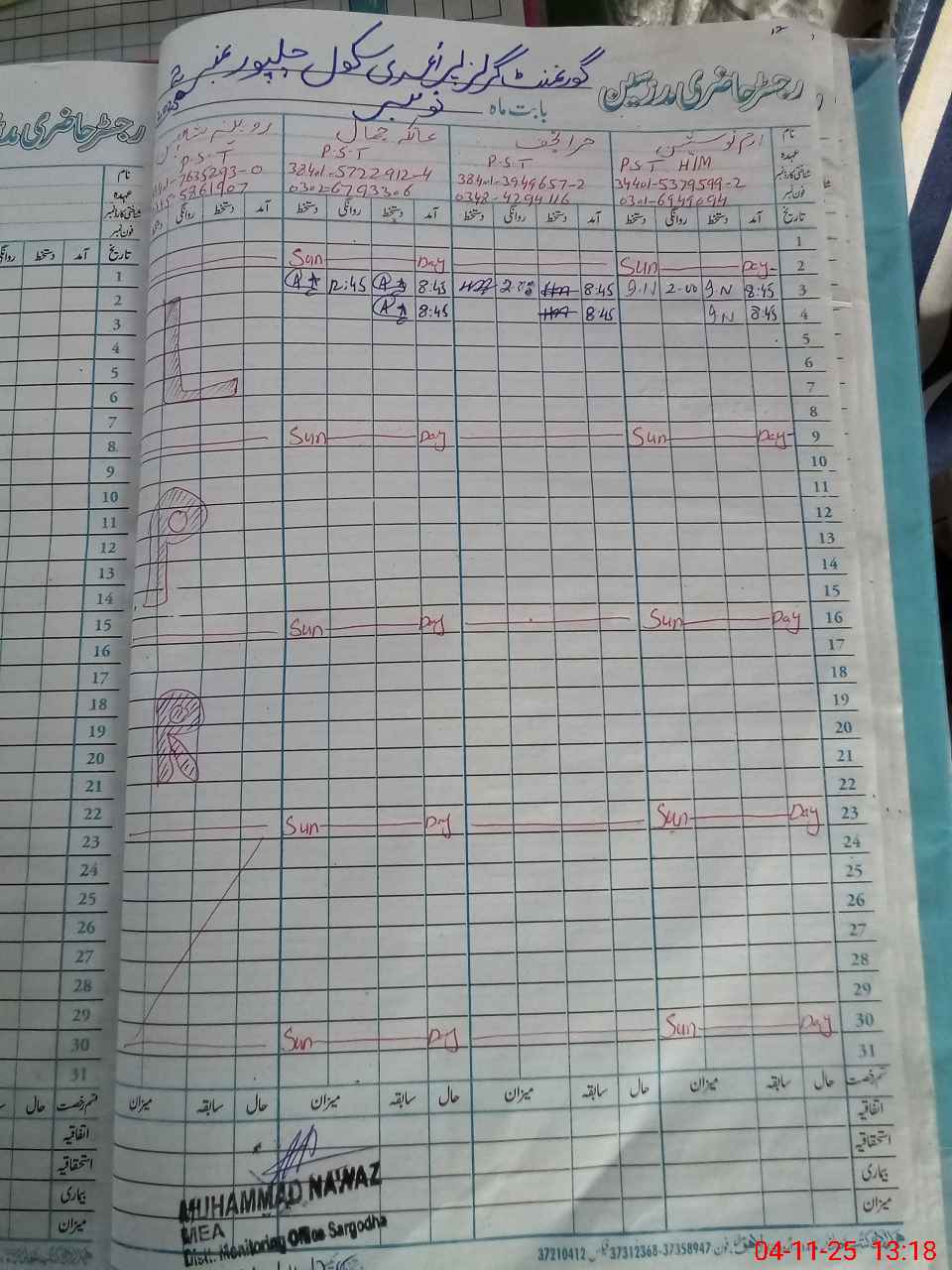 | Name: IR**** NO**** Designation: (School Headmaster's/Headmistress's) PST Phone/Cell Number: 03**** |