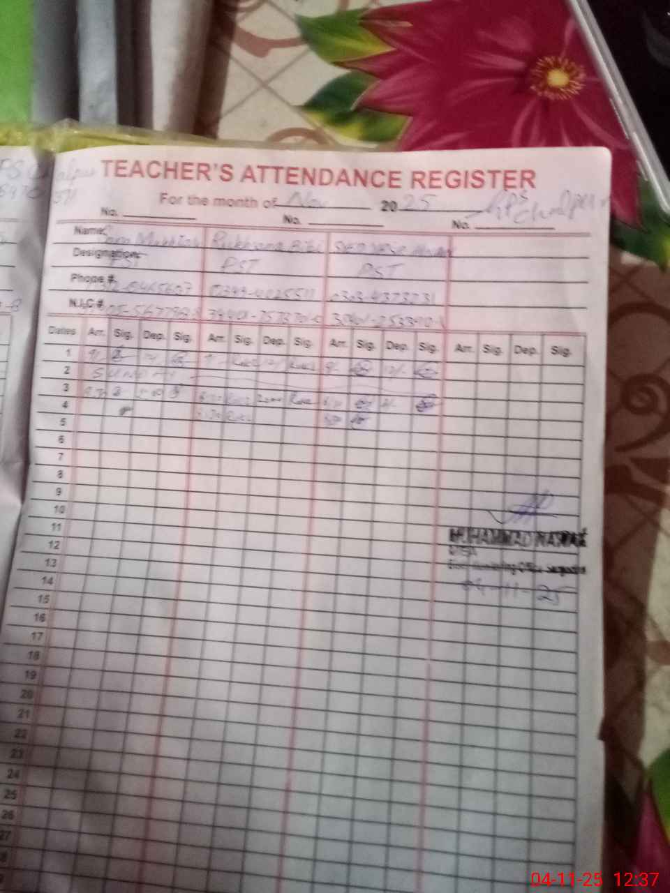 | Name: MO**** AK**** Designation: (School Headmaster's/Headmistress's) PST Phone/Cell Number: 03**** |