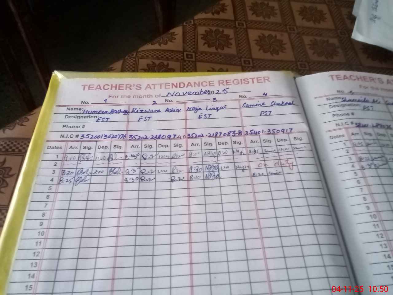 | Name: HU**** BA**** Designation: (School Headmaster's/Headmistress's) ÉST INCHARGE Phone/Cell Number: 03**** |
