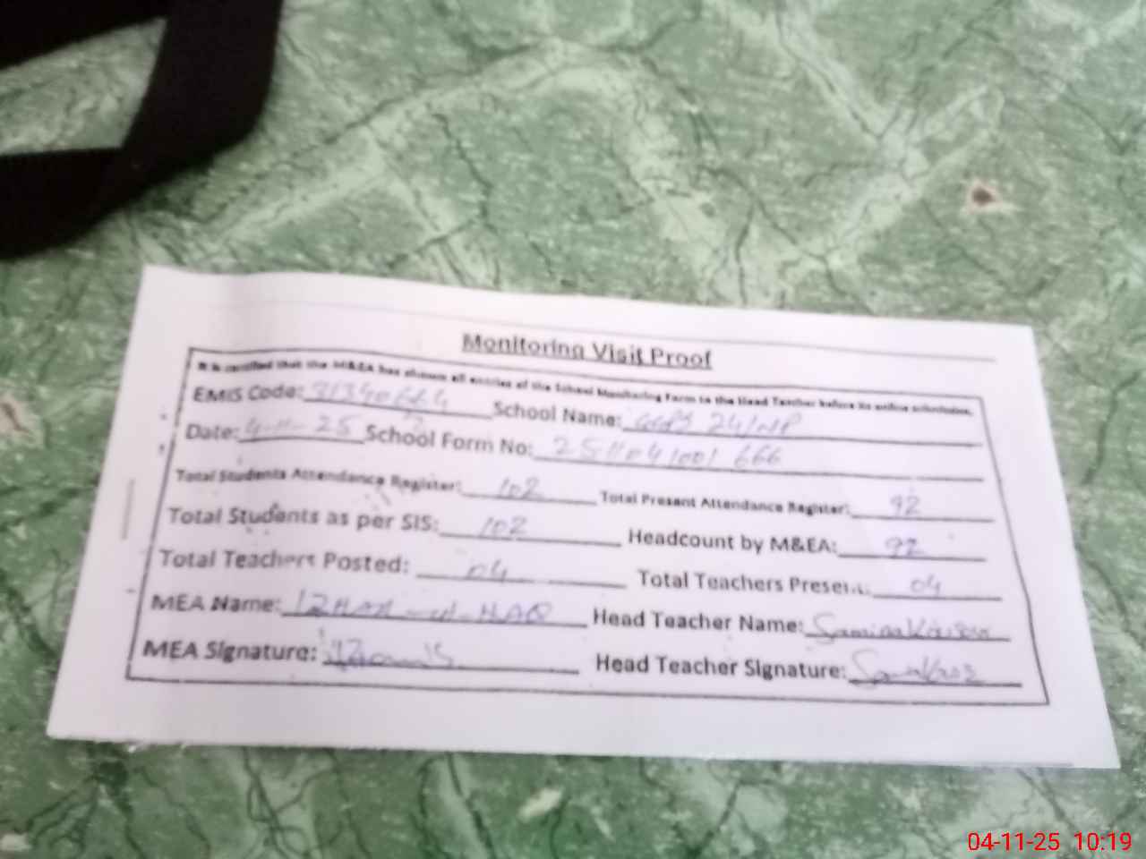 | EMIS Code: 31340664 | Name of School: GGPS CHAK NO.24/NP | |||