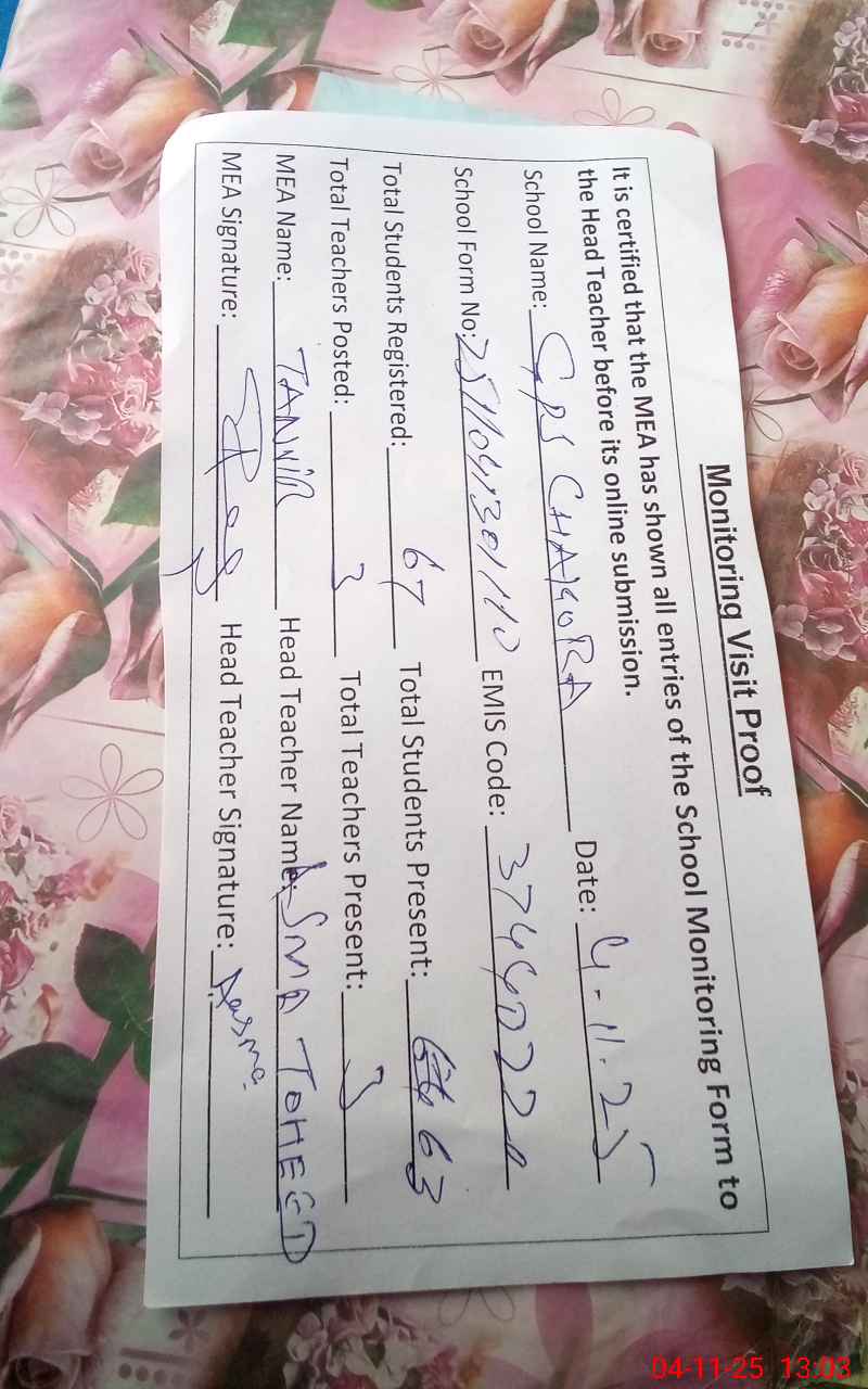 | EMIS Code: 37440220 | Name of School: GPS CHAKORA | |||