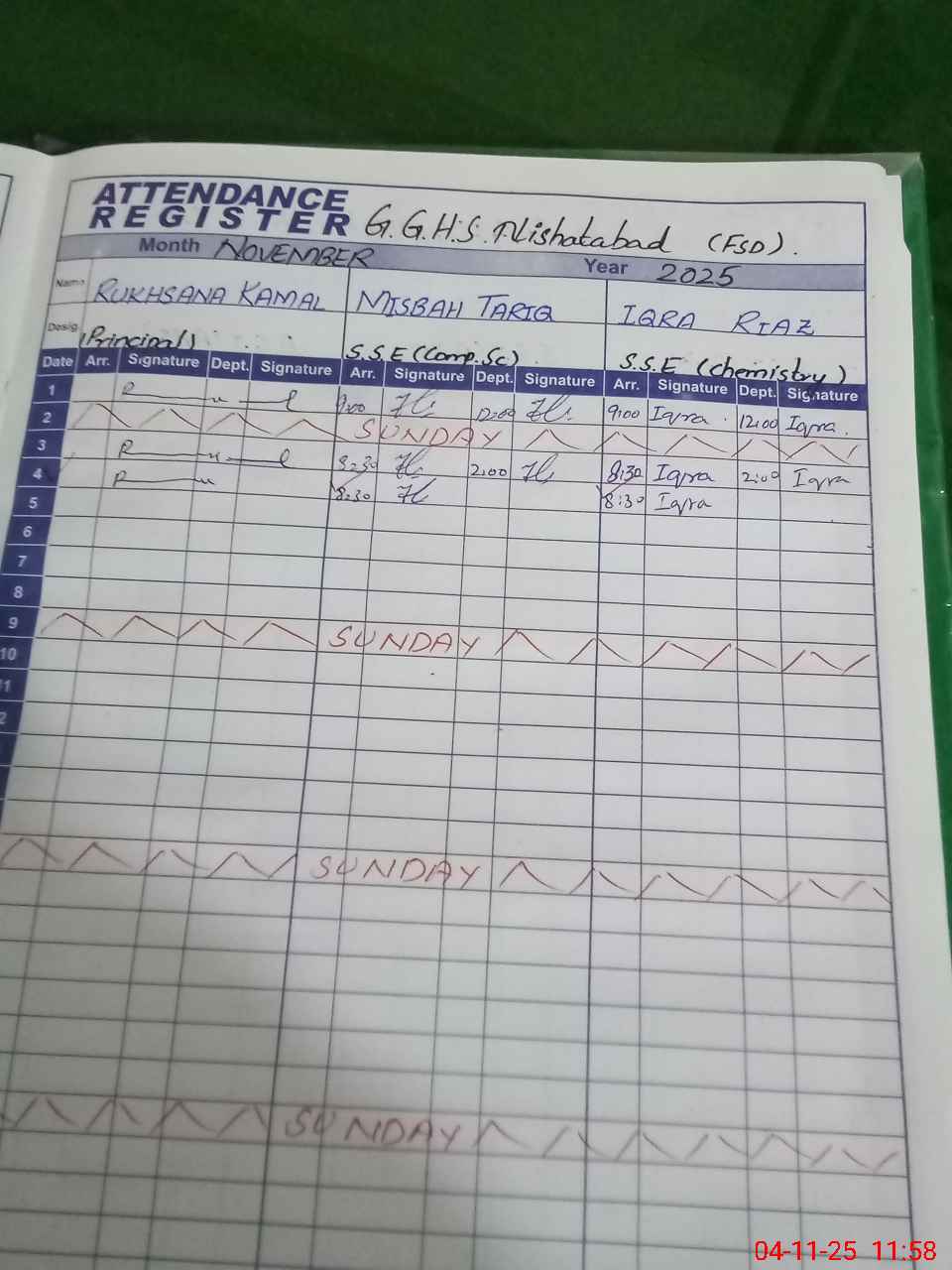 | CNIC | Full Name | Designation | R/C | Absence During Last Calender Month |
