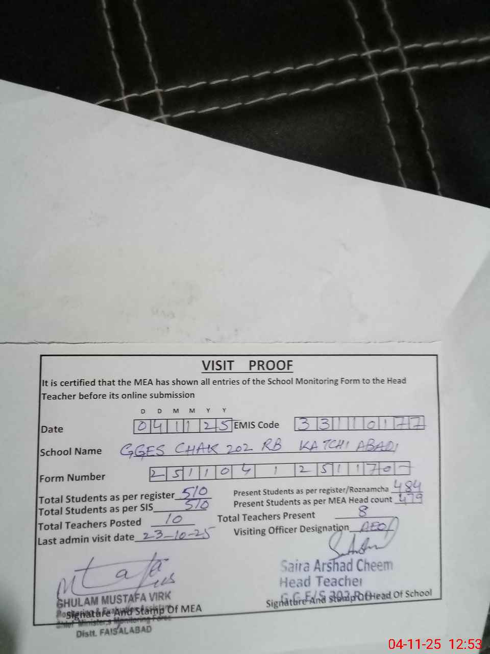 | EMIS Code: 33110177 | Name of School: GGES CHAK 202 RB KATCHY ABADI | |||