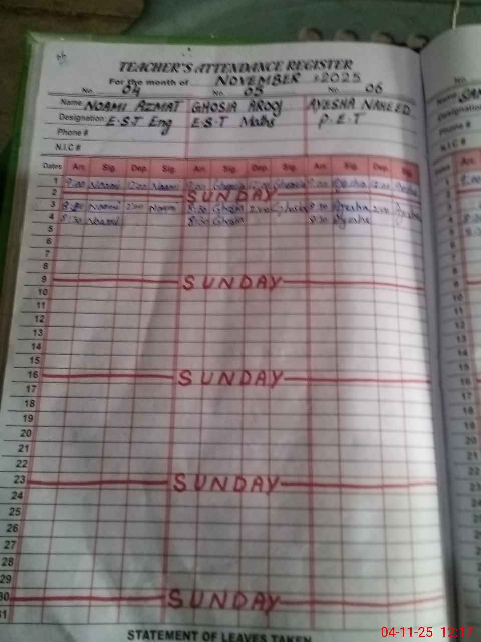 | 37**** | Mu**** Ja**** | ESE Science/Maths | Regular | 0 | 0 | 0 | 0 | 0 | 0 | 0 | 0 | 0 | Maternity |