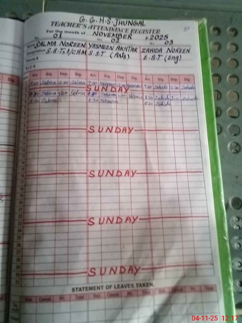 | EMIS Code: 37360137 | Name of School: GGHS JHONGAL | |||
