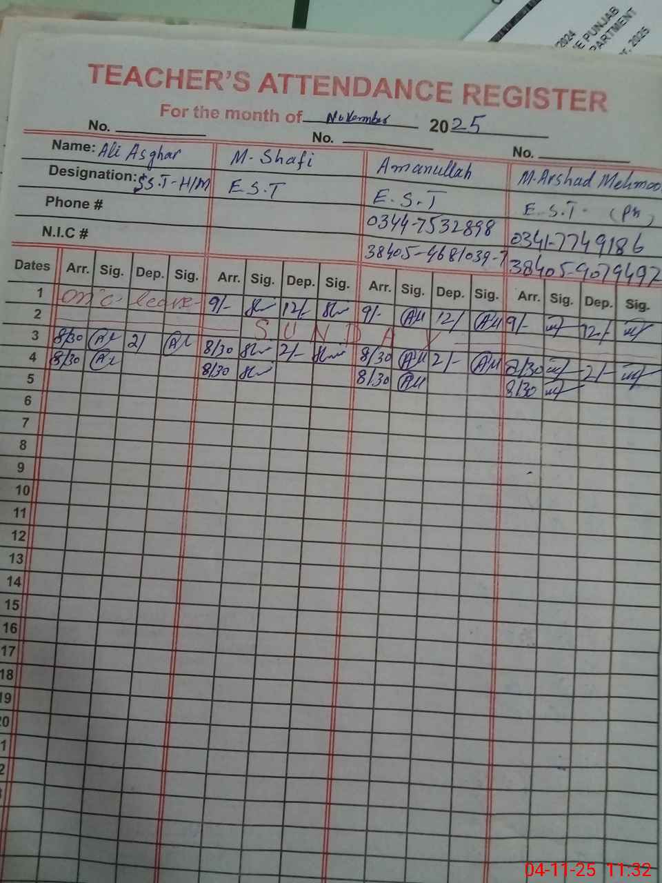 | Name: AL**** AS**** Designation: (School Headmaster's/Headmistress's) SST (ARTS) Phone/Cell Number: 03**** |