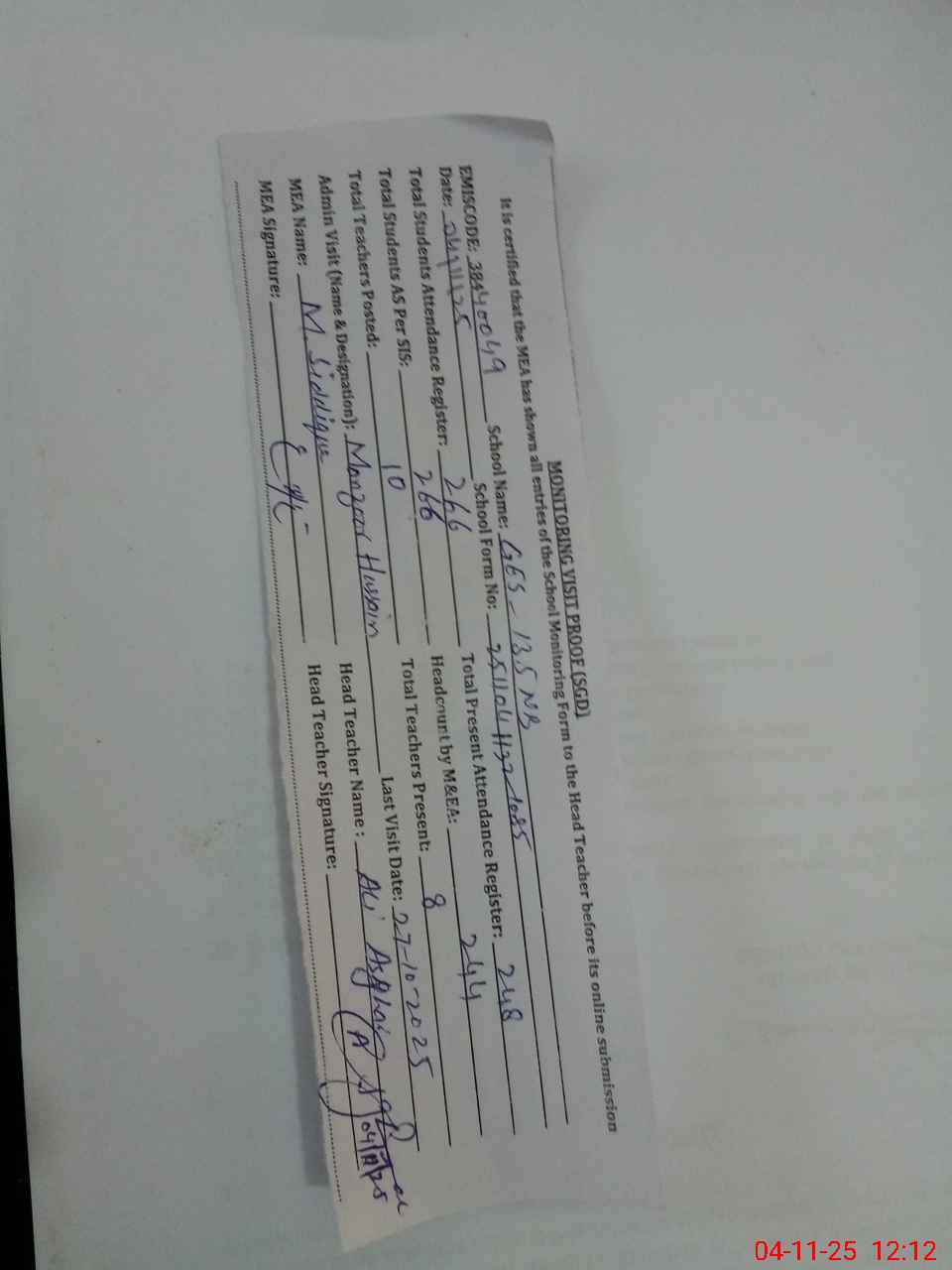 | Certified that this School was Inspected by the Undersigned MEA/DMO Today and the Information Stated Above is as Per Record. | |||||
